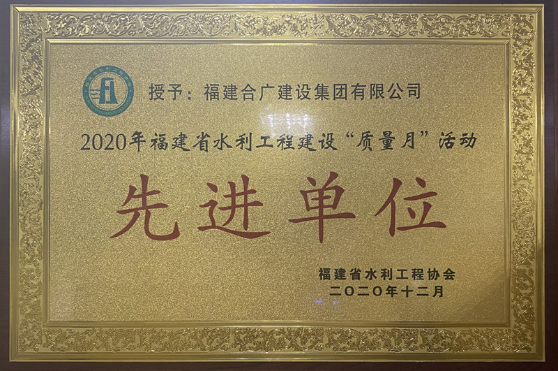 • 福建合廣建設(shè)集團(tuán)有限公司2020年費(fèi)水利工程質(zhì)量月榮譽(yù)證書(shū)