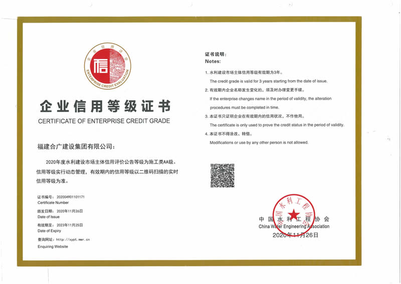 • 2020年水利信用評(píng)價(jià)施工類(lèi)AA級(jí)