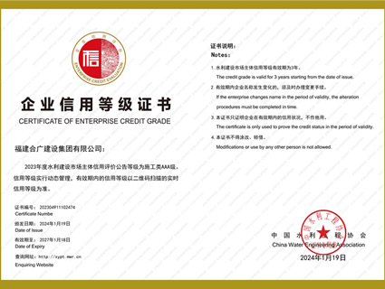 • 2024水利建設(shè)AAA企業(yè)信用等級(jí)證書(shū)
